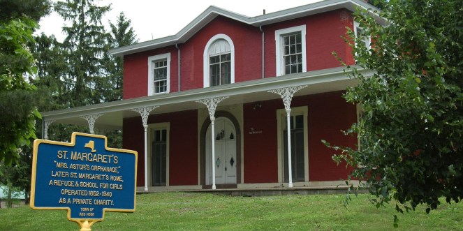 Shortly after her father-in-law’s death, Margaret Armstrong Astor established Mrs. Astor’s Orphan Asylum (later known as St. Margaret’s Home) in 1853. The home was located in Red Hook, NY near their Rokeby estate. It was created as a home for orphaned and neglected girls from northern Dutchess County to learn the skills needed to either find a husband or be employed on the many country estates along the Hudson River. She paid a matron to run the home and the family paid expenses for upkeep of the property. By 1872, when Margaret died, the home was housing ten girls.